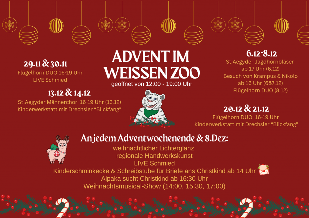 Erstmals öffnen wir an jedem Adventwochenende von 12 – 19 Uhr unsere Tore mit einem speziellen Adventprogramm für euch.